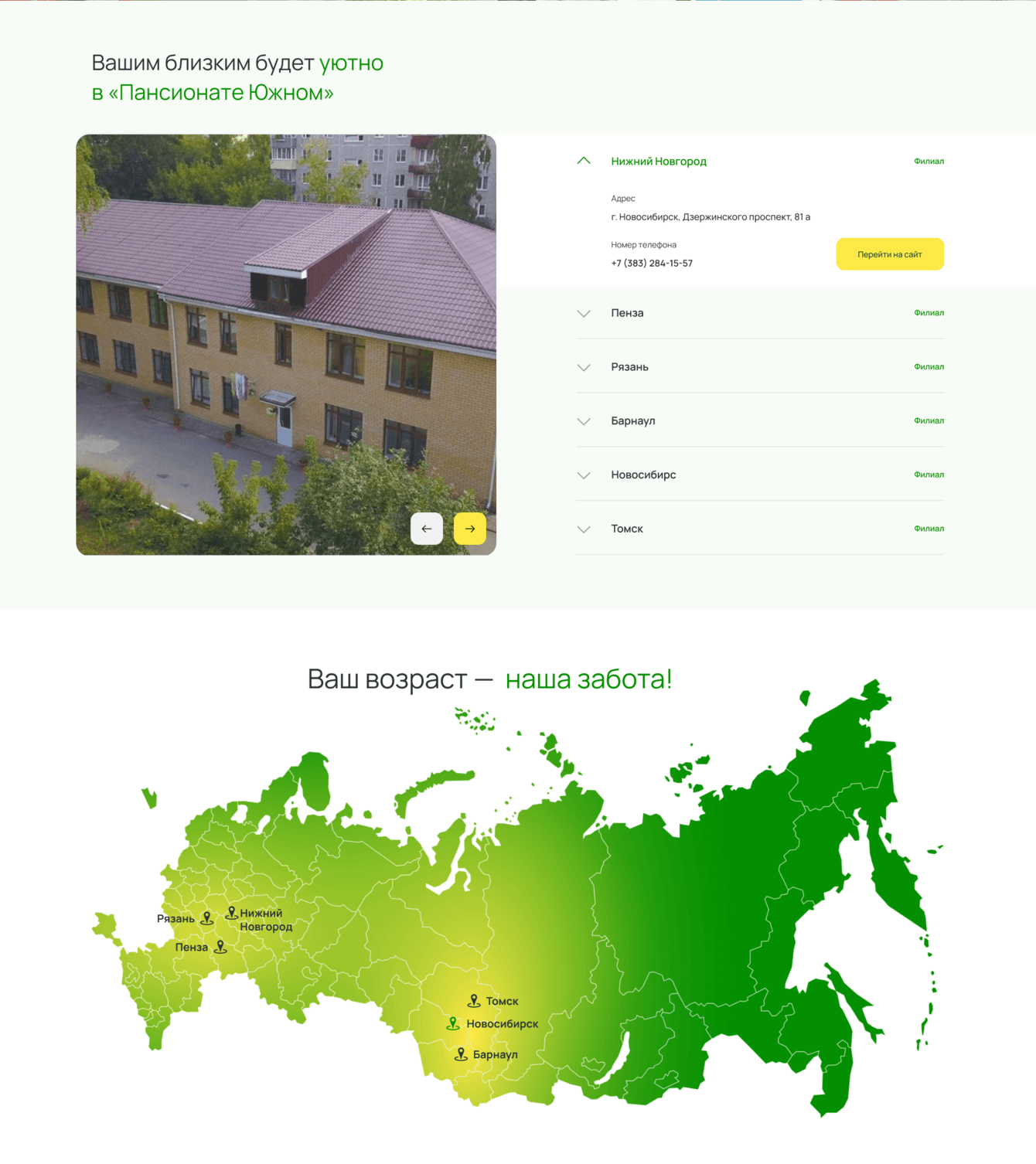 Цель проекта: создание сайта пансионата для пожилых людей, расположенного в нескольких городах , который будет помогать пожилым людям и их родным найти поистине подходящее жилье и услуги, а также обеспечивать безопасность и комфорт для проживающих. Упростить процесс поиска жилья для пожилых людей и обеспечить им максимальный комфорт и безопасность.