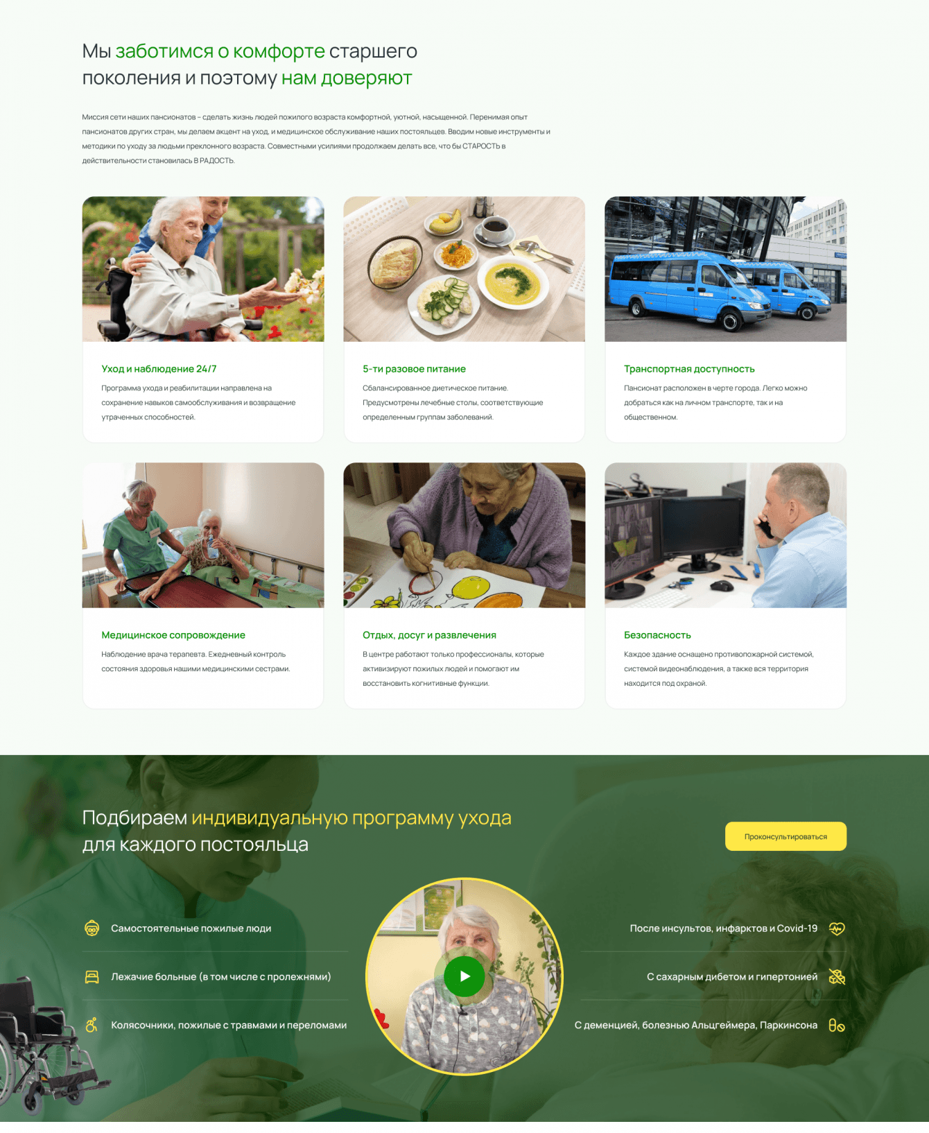 При разработке были учтены все нюансы и закрыты все потребности целевой аудитории данного направления. На сайте можно найти информацию о услугах, ценах, условиях проживания и контактах, способах оформления документов, и много другой важной информации для целевой аудитории.