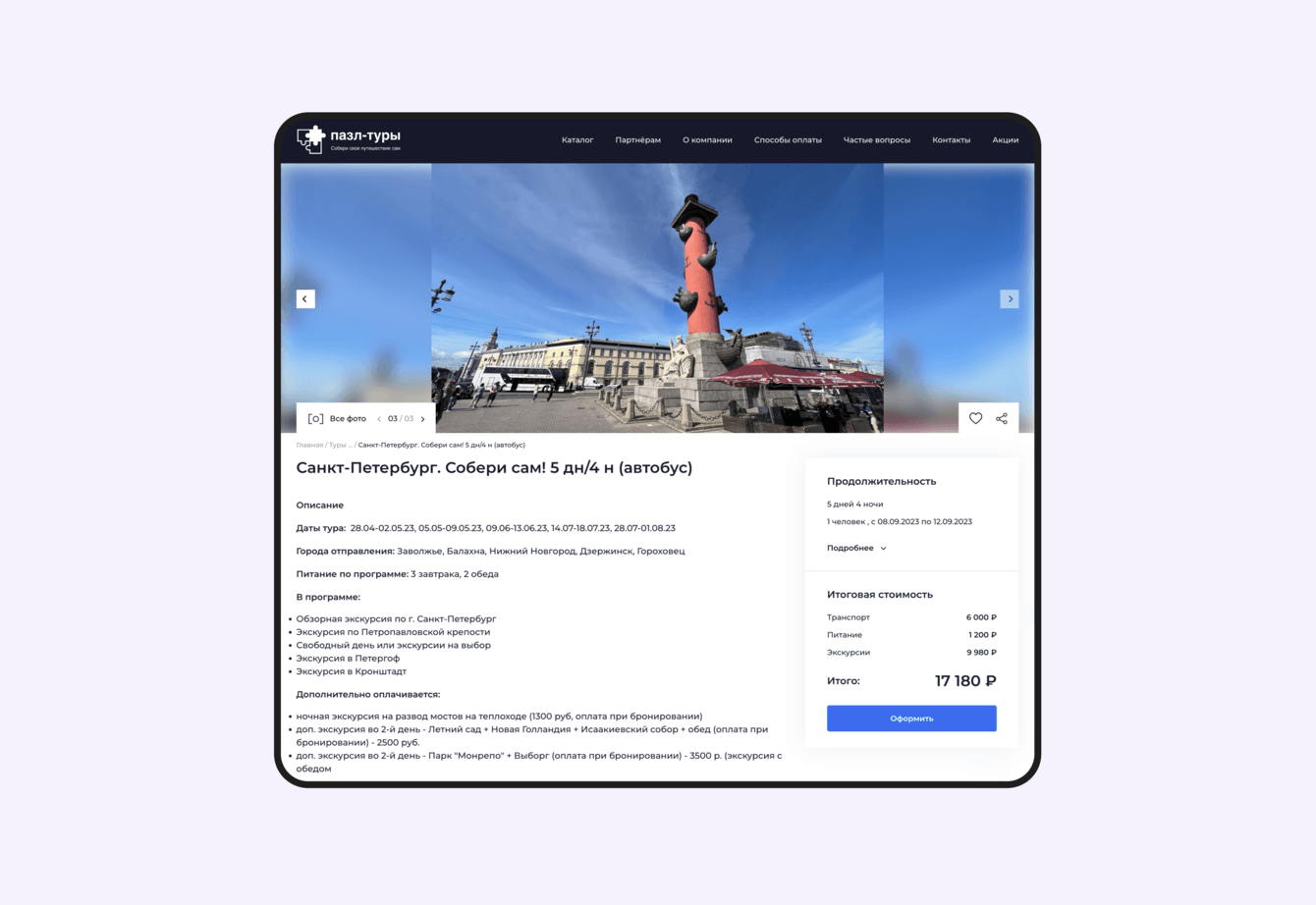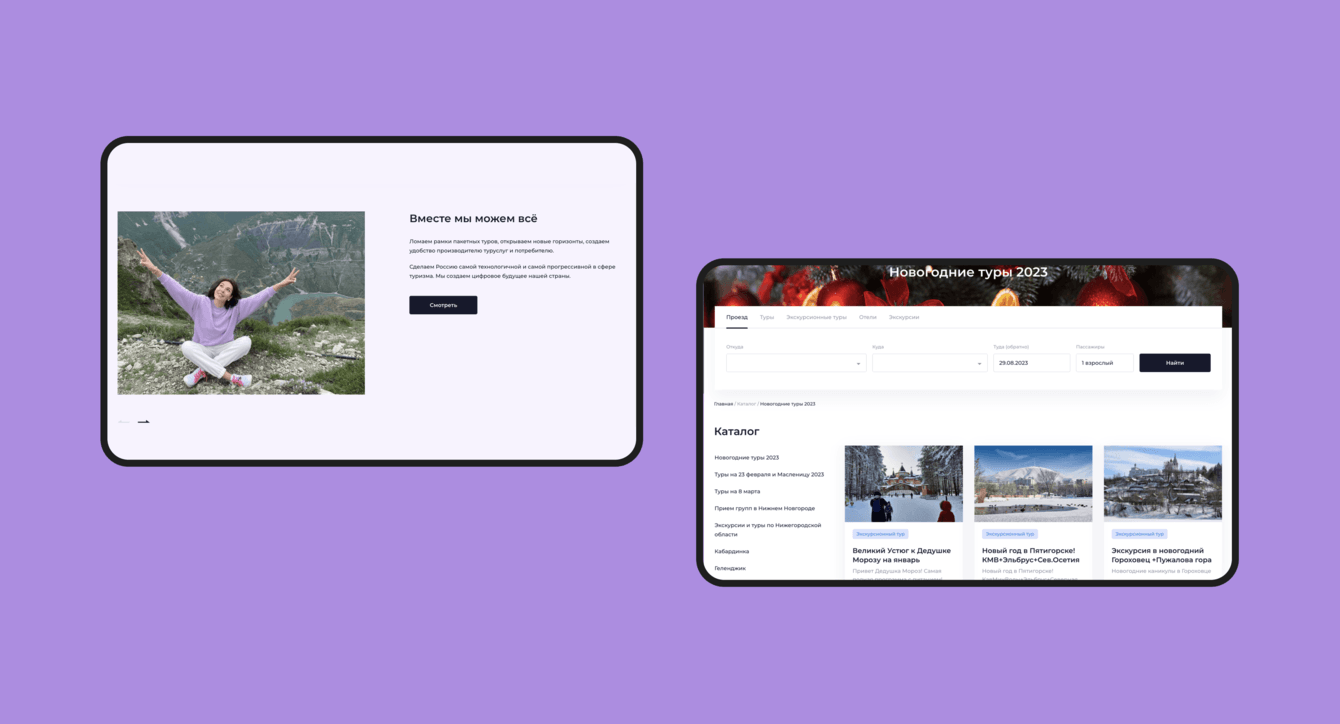 Помимо детальных фильтров пользователь может указать например, дату и количество пассажиров, а затем посмотреть варианты туров в каталоге.