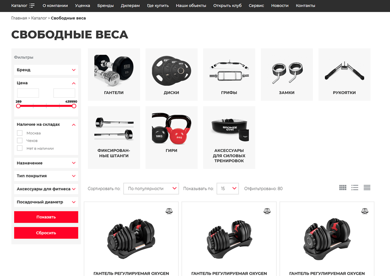 Клиенты получили удобный инструмент для выбора оборудования для оснащения спортивных залов любых площадей, в том числе и для домашнего пользования, который закрывает все потребности целевой аудитории, привлекает большой номенклатурой и помогает быстро решить задачу приобретения.
