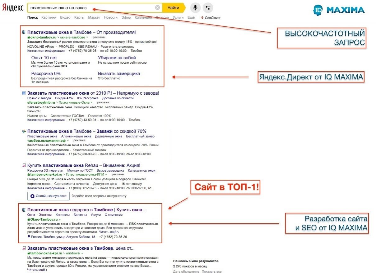 После того, как создали сайт, они продвинули по SEO даже самые высокочастотные запросы (такие как "пластиковые окна", "купить окна ПВХ" и многие другие) в ТОП-10 Яндекс, несмотря на нашу высококонкурентную тематику.