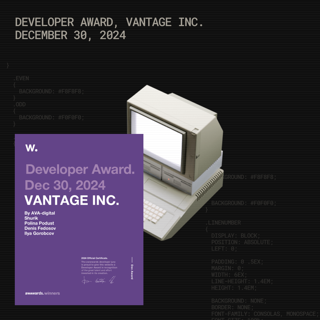 К нам пришли ребята из Vantage Inc. и попросили разработать для них сайт-портфолио, которое отразит их профессионализм и многообразие технических возможностей. Компания специализируется на современных технологиях анимации VR/AR, VFX, и работают над моушн-дизайном в 2D и 3D.
