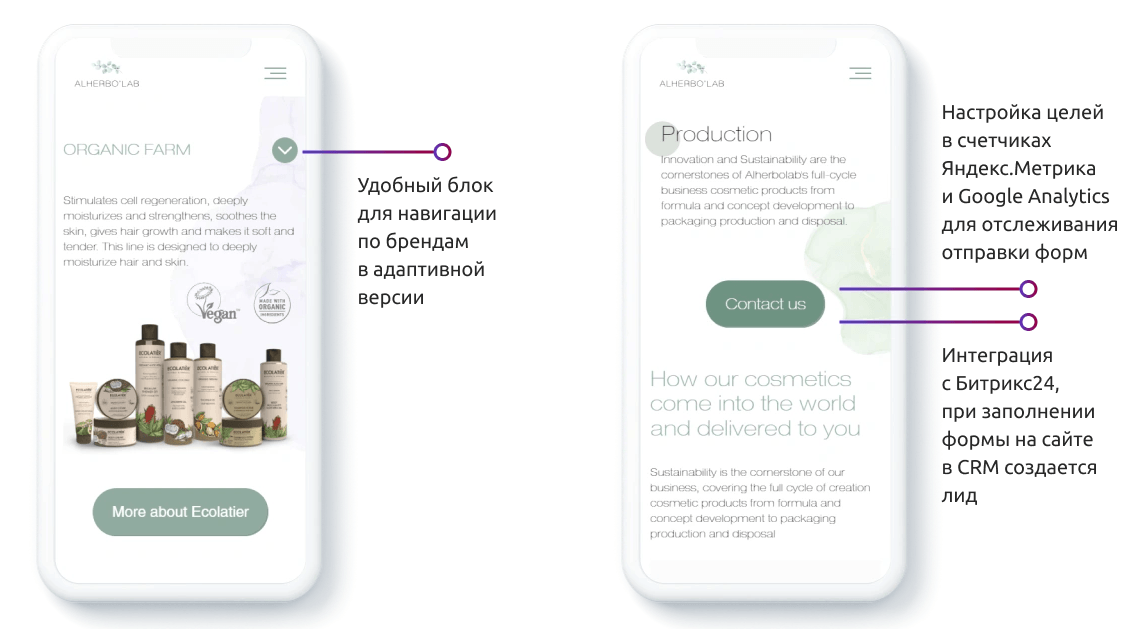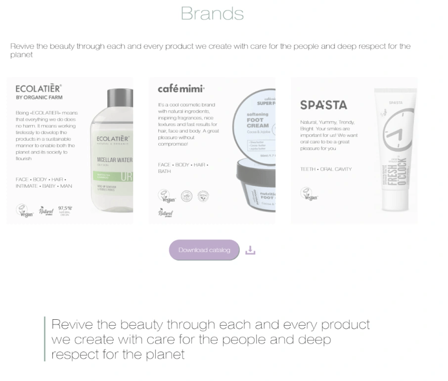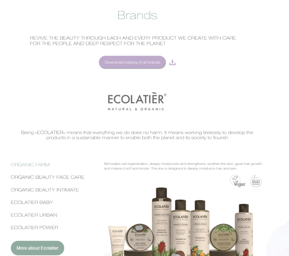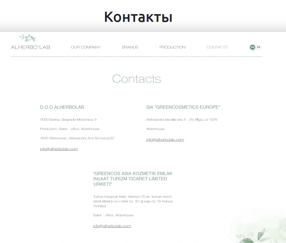 Клиент — производитель экологичной косметики, обратился к нам с запросом на создание сайта для своего подразделения в Сербии. Нужно было создать сайт на английском языке, который расскажет о компании и продукции, отразит миссию бренда, ценности и эстетику экологичности.