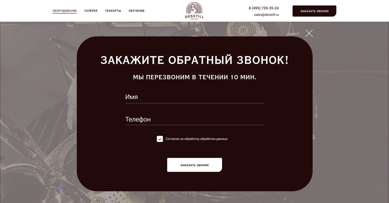 Разработать стильный и функциональный сайт, который позволит красиво показать оборудование и подробно рассказать о товарах.
