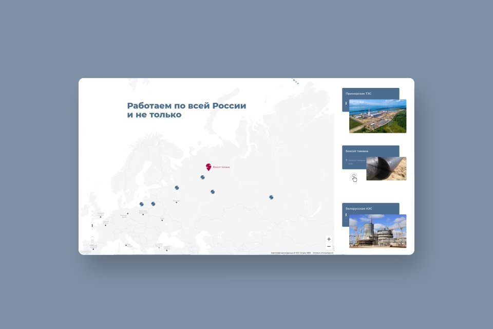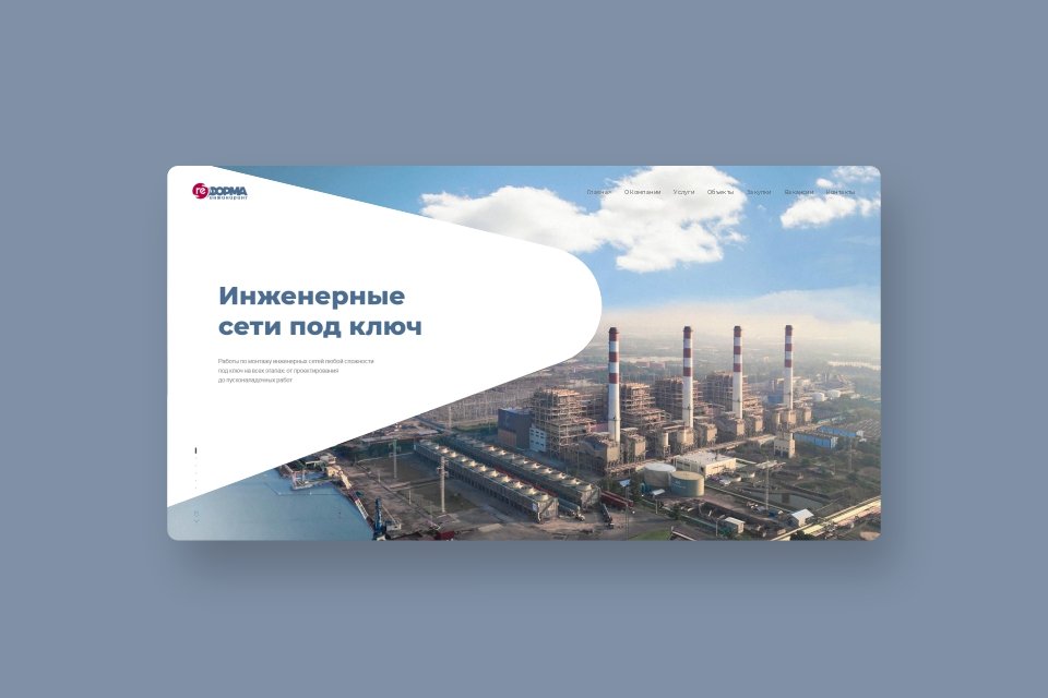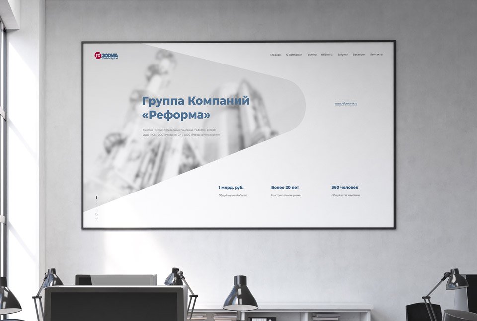 Задача. Разработать новый имиджевый корпоративный сайт с каталогом проектов, разделами вакансии и закупки. Создать единый визуальный стиль для фотоконтента и сайта в целом.