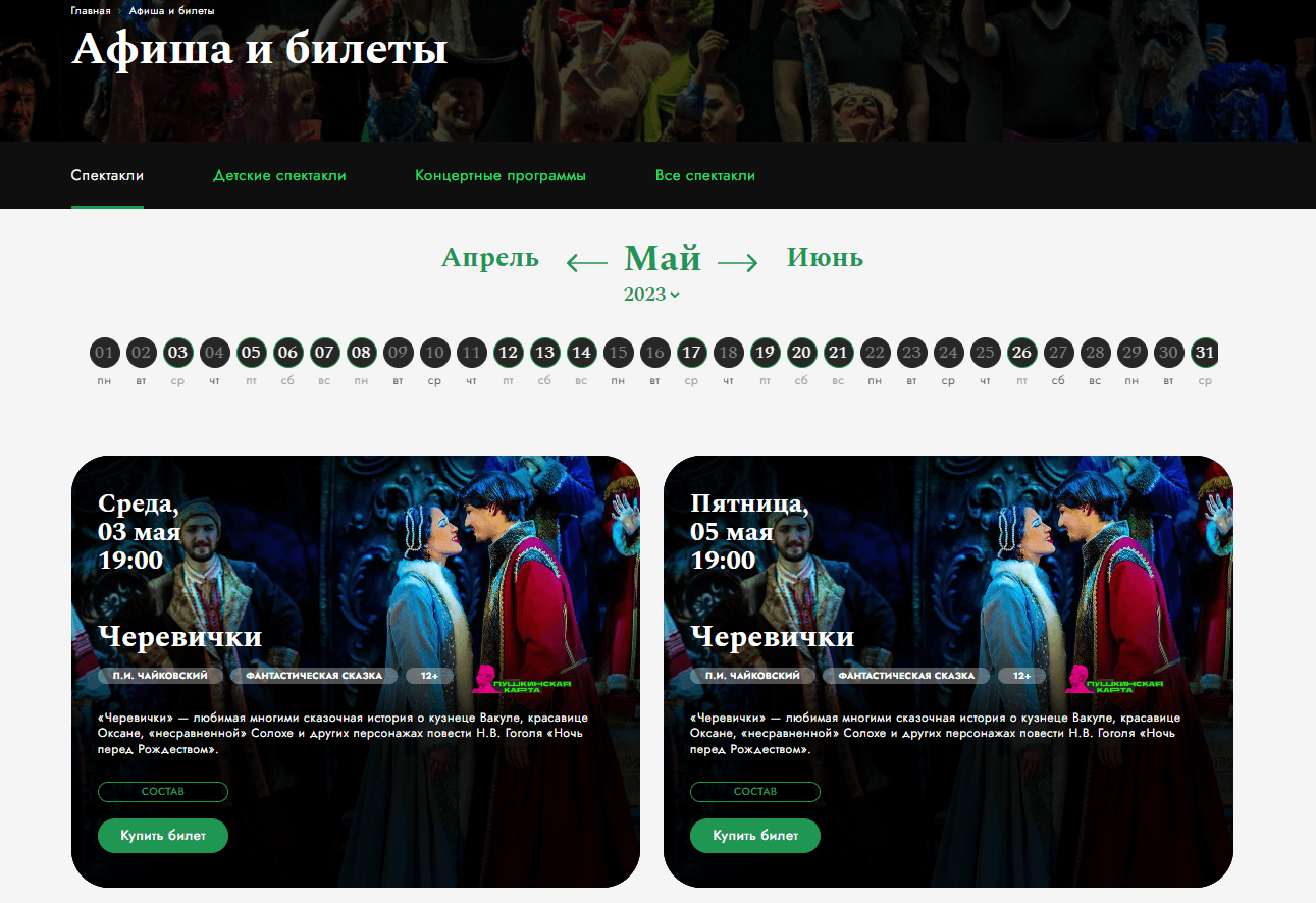 Наша команда наполнила сайт контентом, включая информацию о спектаклях и билетах. После этого мы провели тщательное тестирование функционала сайта, чтобы убедиться в его надежности и безошибочной работе. Также была проведена SEO-оптимизация для улучшения видимости сайта в поисковых системах. В результате клиент получил современный и функциональный веб-сайт, который успешно удовлетворил потребности его аудитории и сделал процесс покупки билетов и поиска информации о спектаклях максимально удобным и доступным.