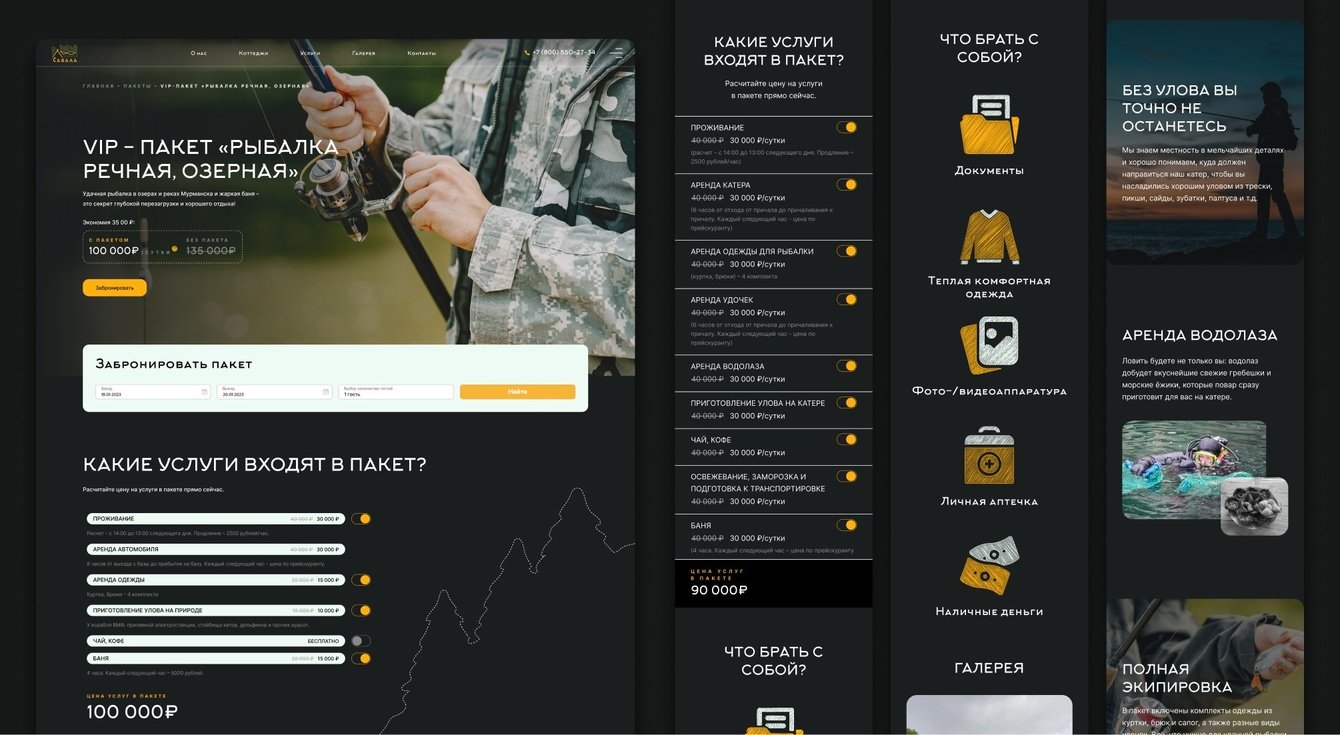 Мы с нуля разработали сайт, который с первой страницы погружает пользователя в атмосферу того отдыха, который предлагает наш клиент. Помимо отрисованных деталей, живых фото, информативных текстов он интересен и своей функциональностью. Каждый посетитель сайта может выбрать уникальный пакет услуг, исходя из своего понимания настоящего отдыха. И быстро забронировать, узнав свободные даты с помощью встроенного модуля бронирования.
