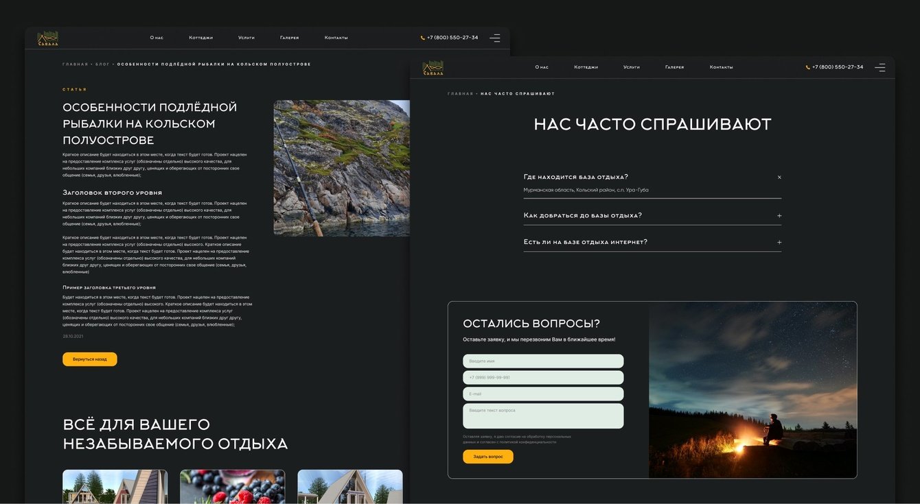 Создание премиального сайта для базы отдыха «Савала» было сложным, но очень интересным проектом. Мы задались целью разработать уникальный продукт, который не только бы привлекал внимание клиентов, но и отстроил бы бренд от всех конкурентов на рынке. Каждый элемент сайта был продуман до мелочей, чтобы создать атмосферу волшебного отдыха в Мурманской области. Мы гордимся результатом нашей работы и уверены, что получившийся ресурс внесет значительный вклад в большую популярность базы отдыха «Савала» на рынке туризма и отдыха.