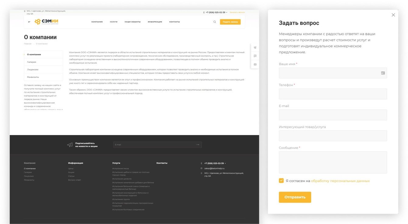 Компания СЭЭМИ - эксперты в области испытаний строительных материалов и конструкций. Они обратились в нашу студию для создания качественного и информативного сайта для привлечения новых клиентов и расширения аудитории.