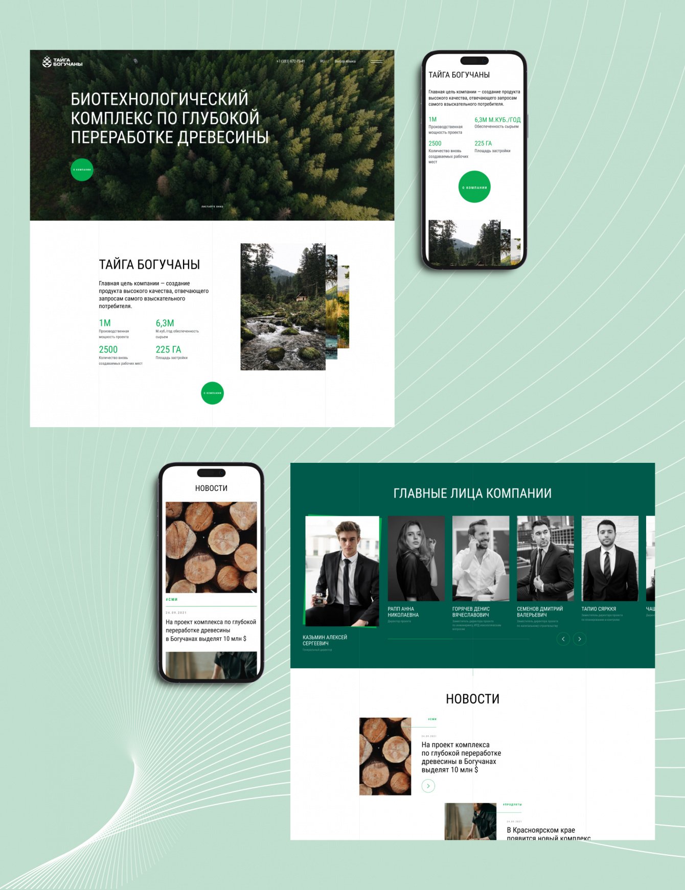 «Тайга Богучаны» — это биотехнологический комплекс по глубокой переработке древесины. Цель проекта заключалась в создании гармоничного и визуально привлекательного сайта, который отражал бы концепцию, суть деятельности компании, и подчеркнул её экологичность.