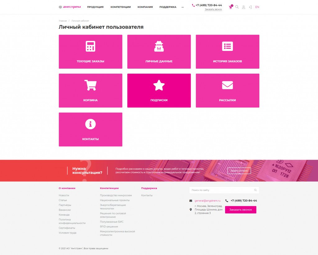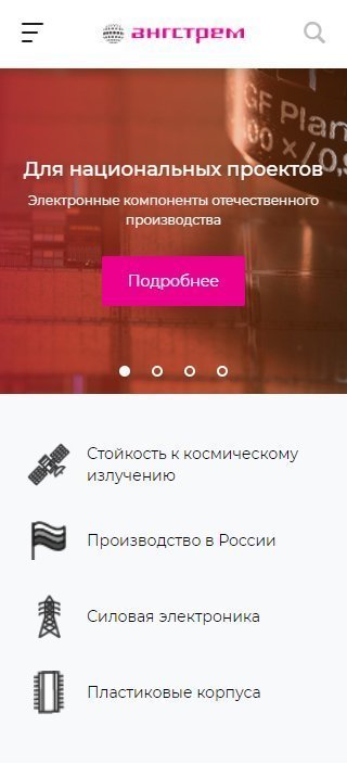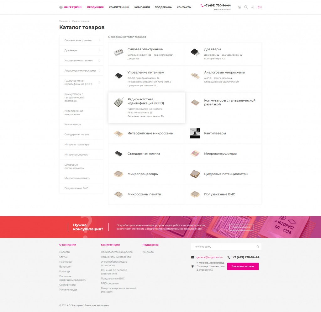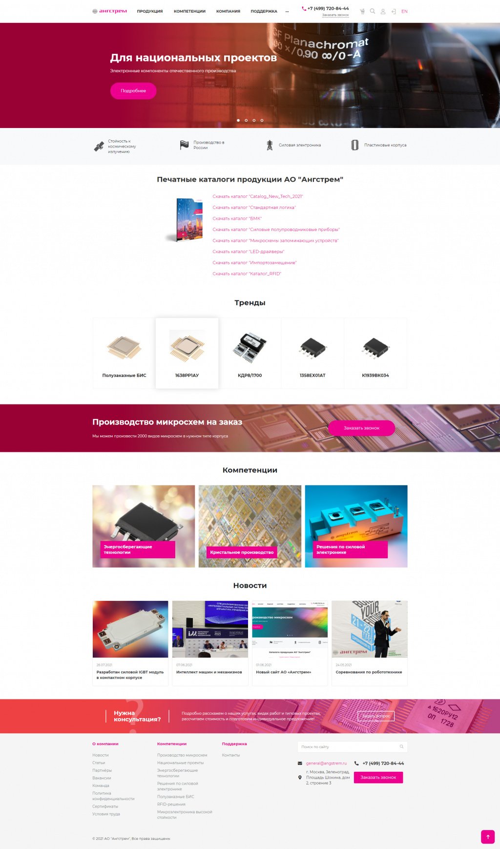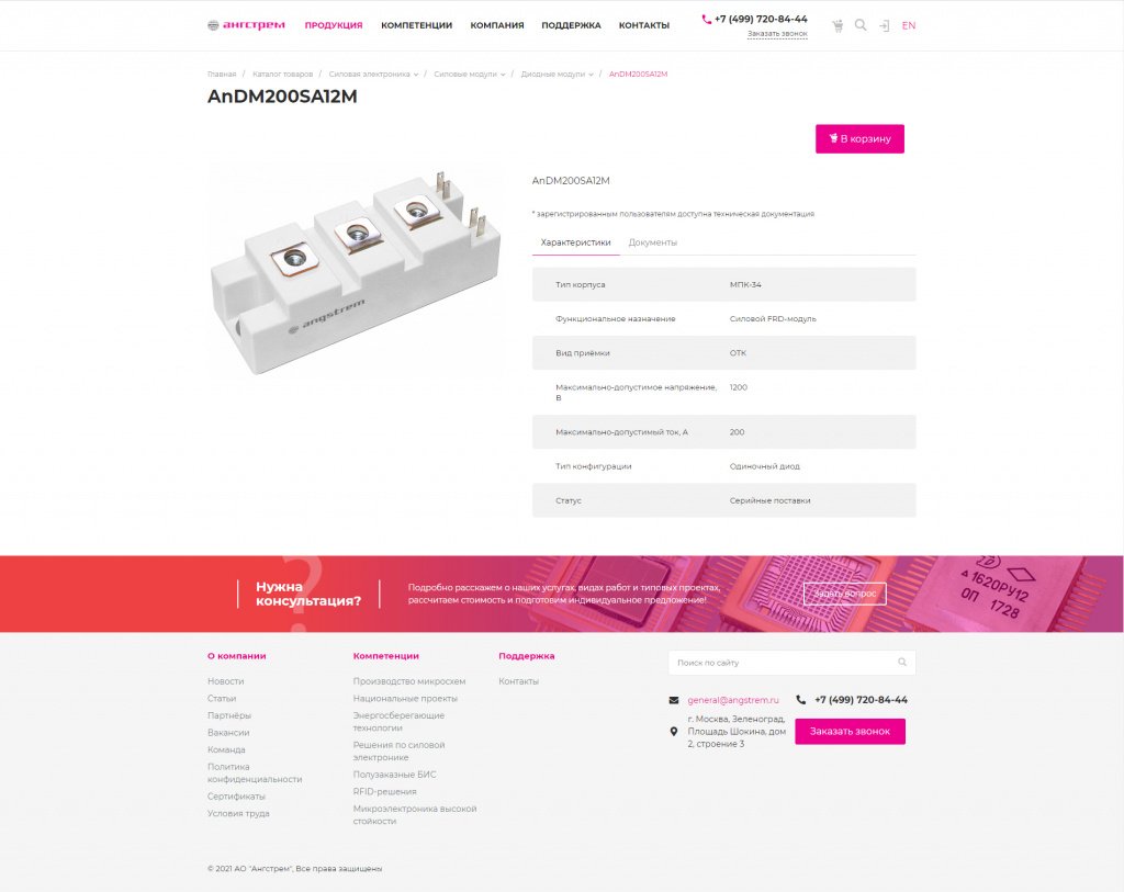 Кроме того, сайт как должен был быть удобен и для заполнения посредством выгрузки из 1С, так и достойно представлять компанию АО «Ангстрем» в сети интернет.