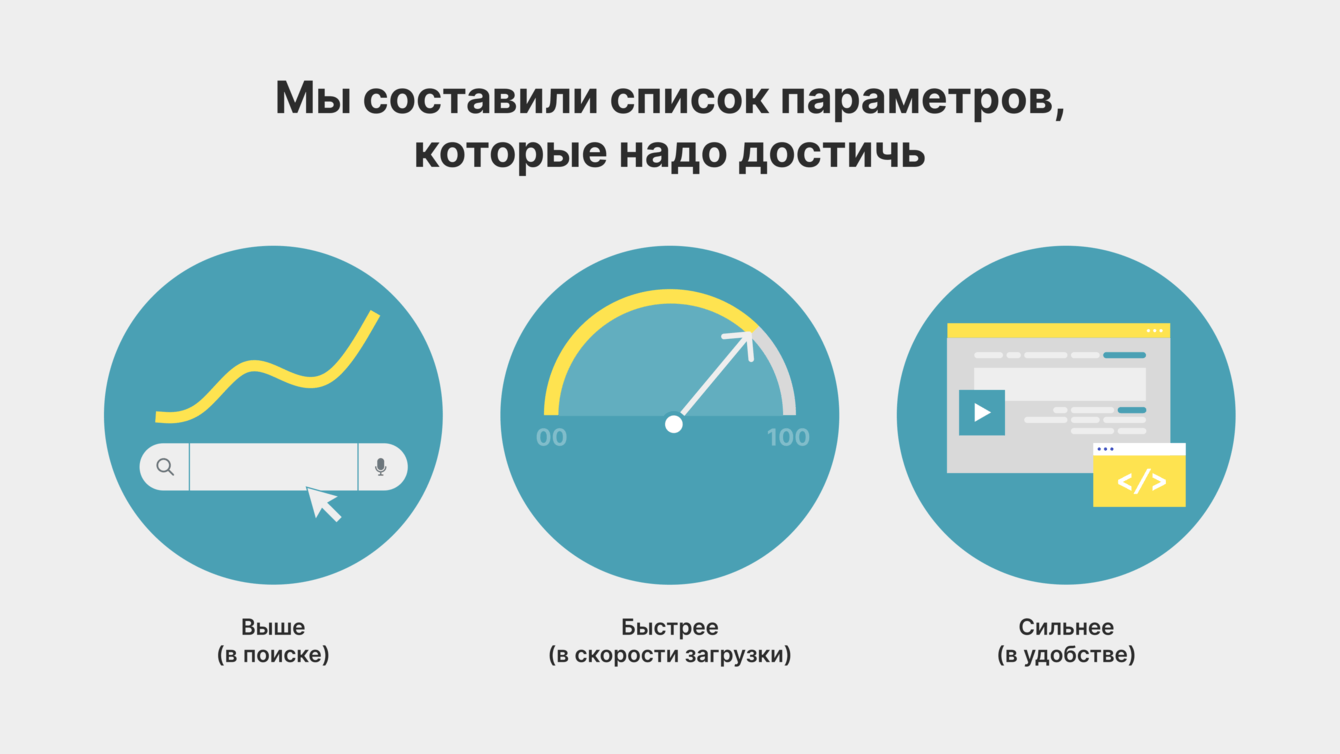 Анализ конкурентов выявил явных фаворитов по числу услуг, качеству реализации и поисковой видимости сайта. Мы составили список параметров, которые надо достичь, чтобы быть выше (в поиске), быстрее (в скорости загрузки), сильнее (в удобстве).
