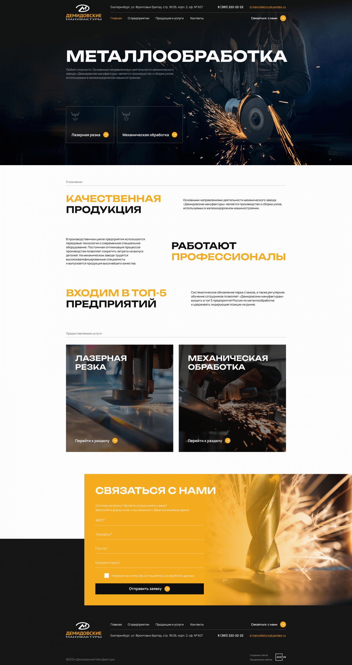 Разработать сайт-визитку для предоставления своих услуг по металлообработке и удержания позиций завода на рынке.