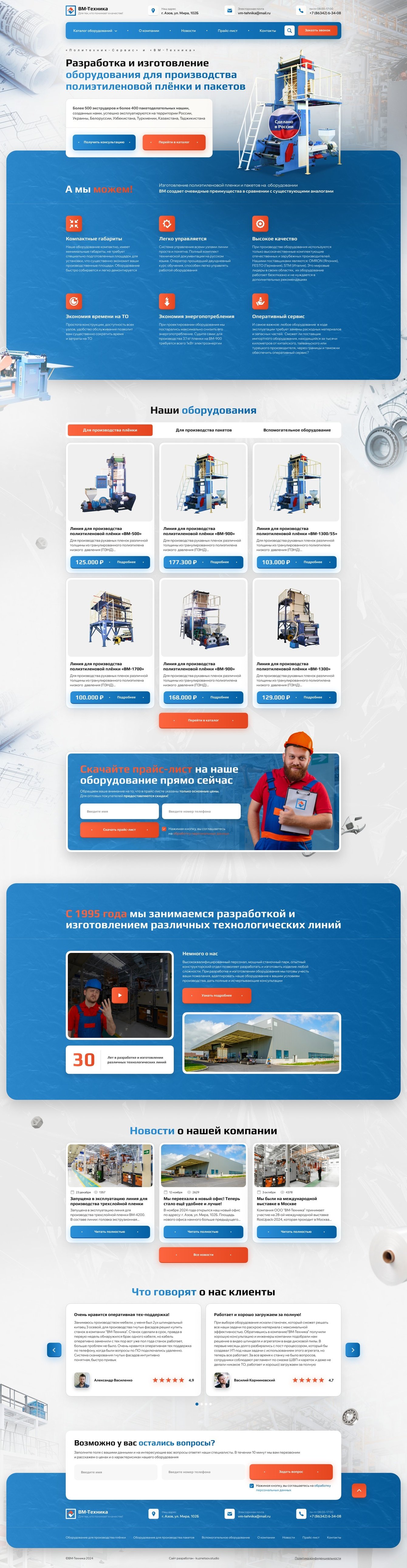 ВМ-Техника» — уникальный производитель оборудования для производства полимерной плёнки. Компания входит в число немногих предприятий в России, которые создают подобное оборудование. Производство расположено в нашем родном городе, поэтому проект имел для нашей команды особое значение.