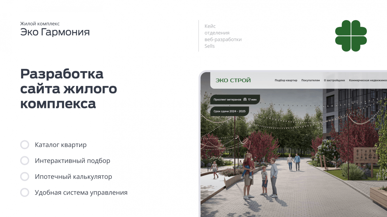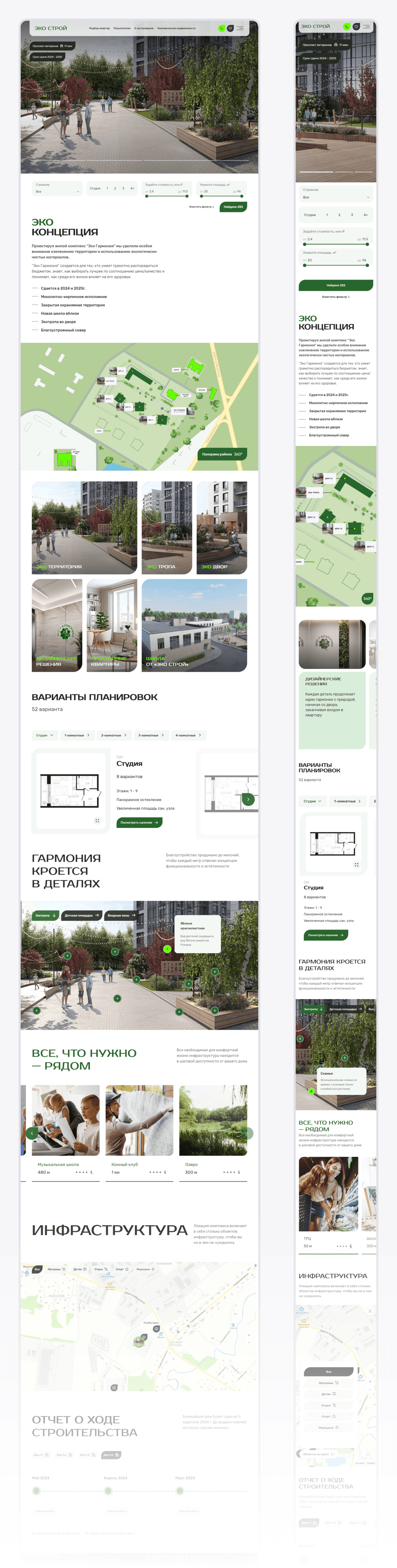 Перед командой стояла зада разработать функциональный и стильный сайт для жилого комплекса "Эко Гармония"