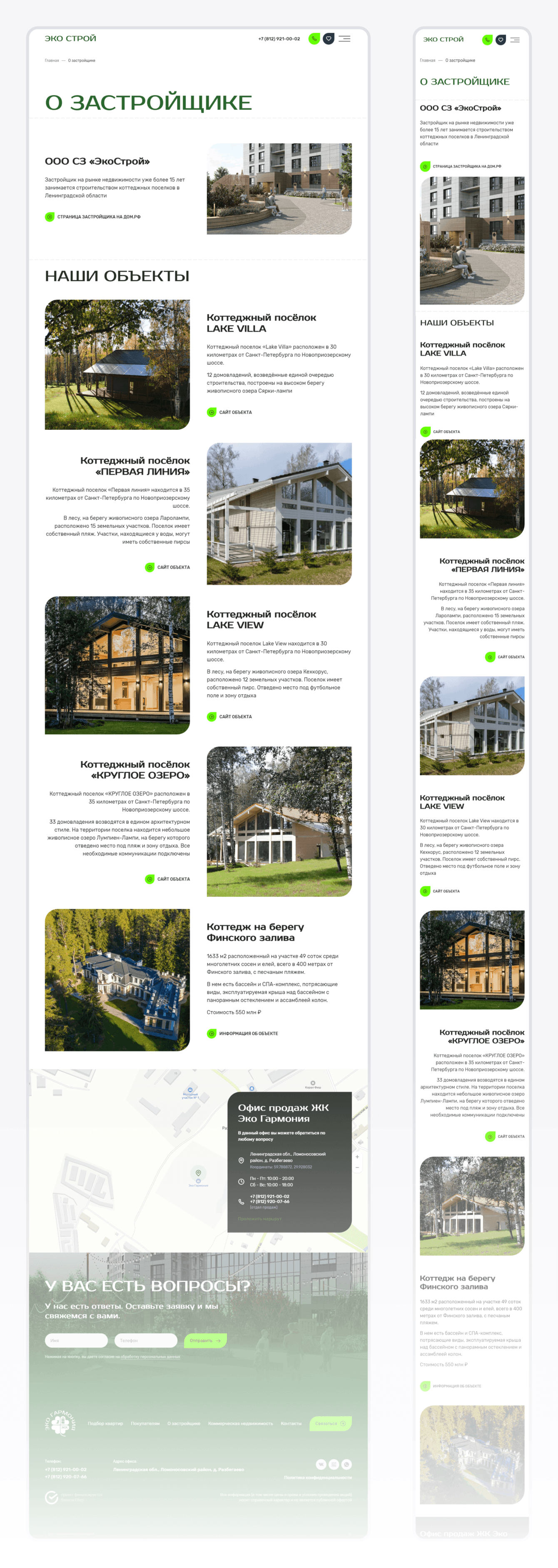 Страница содержит список проектов компании, что как нельзя лучше показывает опыт компании в сфере строительства объектов недвижимости.