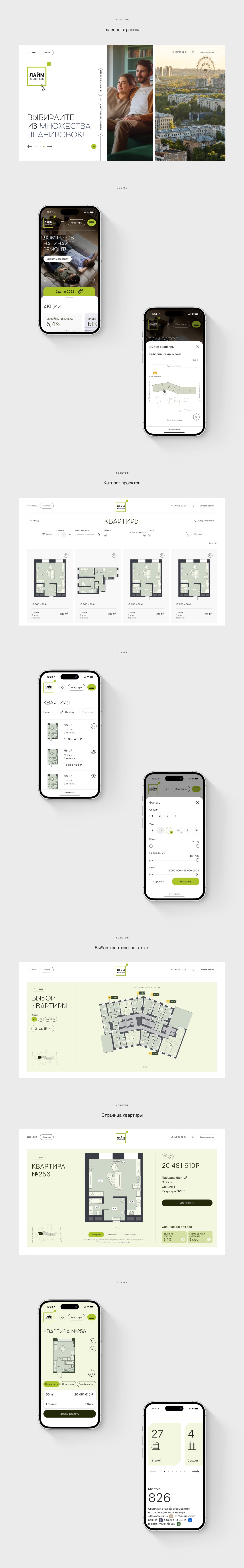 Мы запустили новый проект — сайт жилого комплекса «Лайм». На сайте пользователь может ознакомиться с преимуществами ЖК и выбрать квартиру — как в каталоге, так и на плане здания.