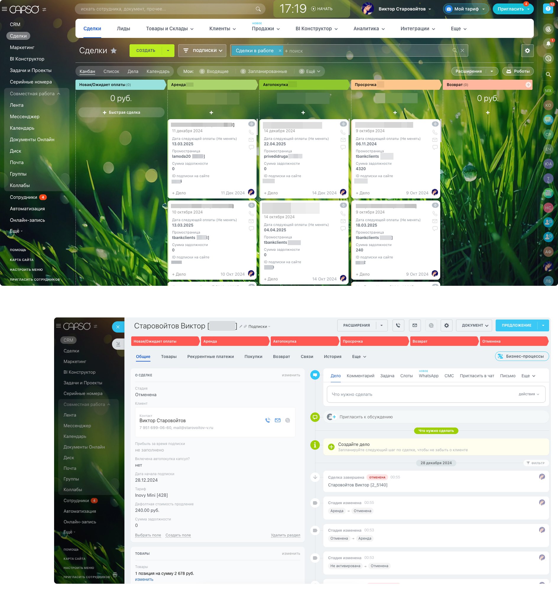 Вся работа с подписками, заказами и отменами ведется через Bitrix24.