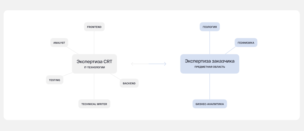 Мы работаем в большой команде и делаем общее дело для развития нефтяной промышленности РФ. На нашей стороне экспертиза по IT-технологиям (frontend, backend, analyst, technical writer), на стороне клиента – поддержка проектов по предметной области (геология, геофизика, бизнес-аналитика).