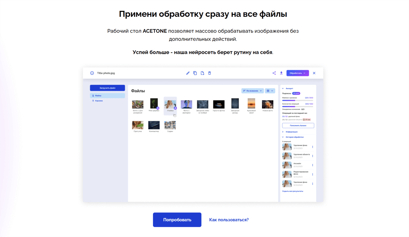 С помощью блога мы регулярно публикуем информацию о новинках в сфере обработки изображений с помощью нейросетей. А также делимся знаниями о различных техниках редактирования, от простых решений в 1 клик до сложных манипуляций. Это помогает нашим пользователям освоить новые навыки и ускорить получение конечного результата с помощью сервиса ACETONE.AI.