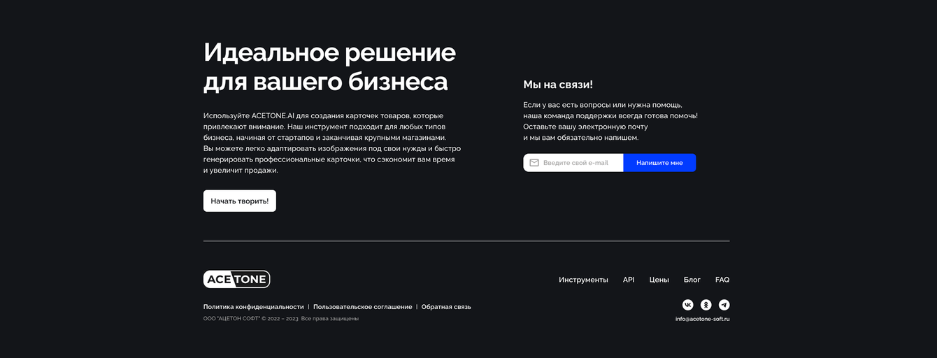 После разработки MVP и первых успешных тестов стало понятно, что проект может с легкостью вырасти в конкурентноспособный коммерческий сервис, о котором дальше и пойдет речь. Название подобрали тоже говорящее - ACETONE.AI.