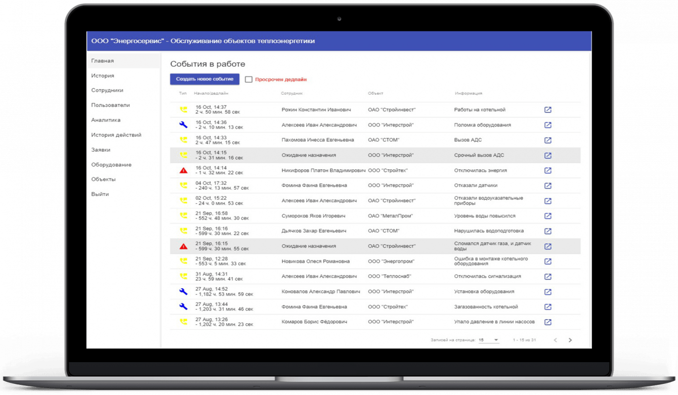 Разработка системы управления плановым и внеплановым обслуживанием технических систем на объектах