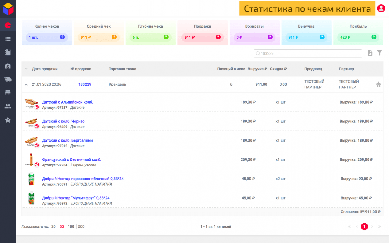 - Просмотр статистики продаж всей розничной сети в режиме реального времени.
