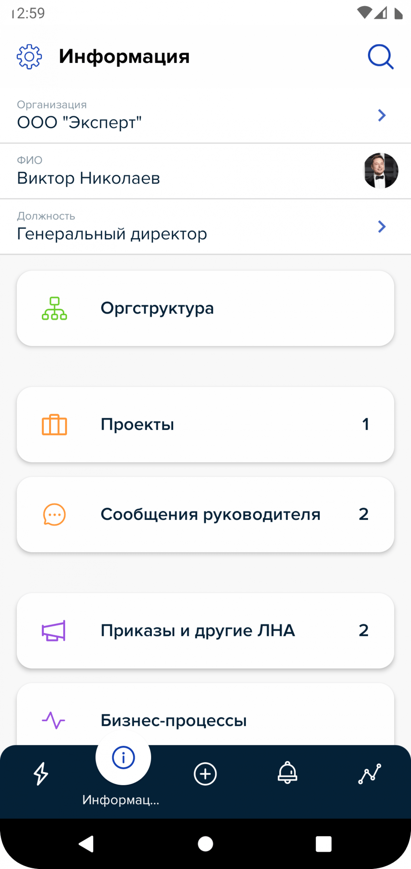 Система включает в себя заполнение оргструктуры компании (сотрудники-должности-отделы), различные права и возможности(создавать задачи, проекты, документы и прочее), смотреть аналитику ознакомления с документами и выполнения задач. Также система имеет внутренний чат и ленту событий.