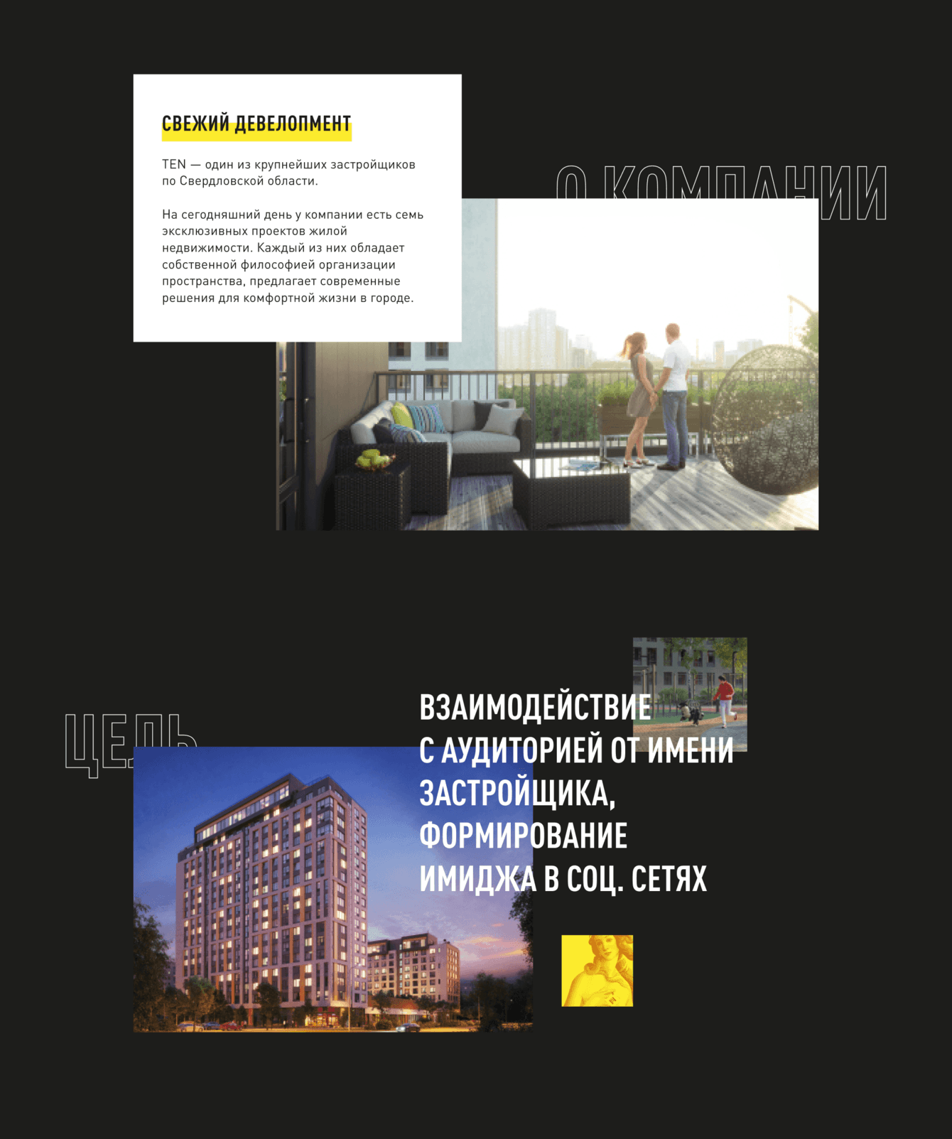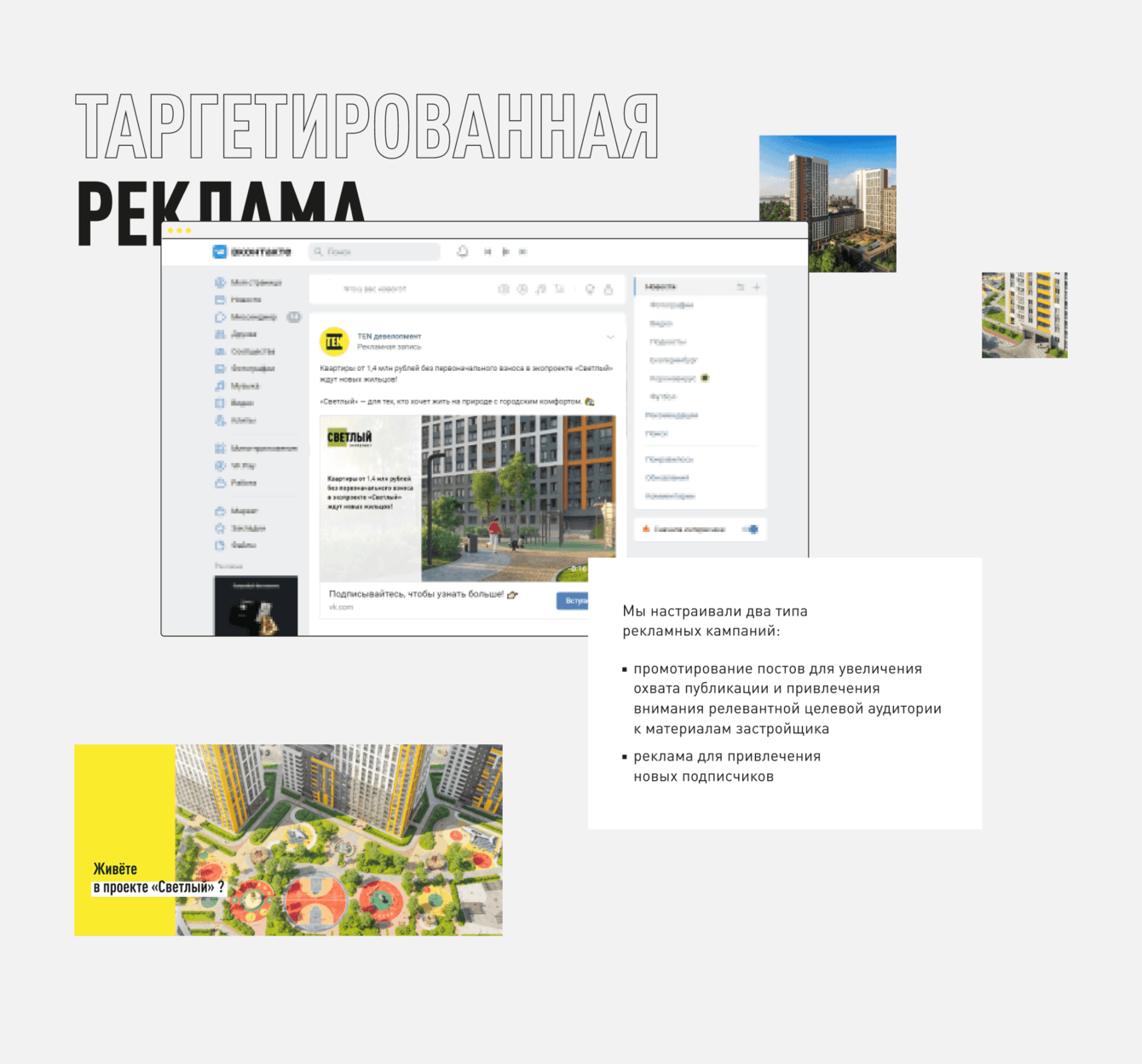 Цель — взаимодействие с аудиторией от имени застройщика, формирование имиджа в соц. сетях.