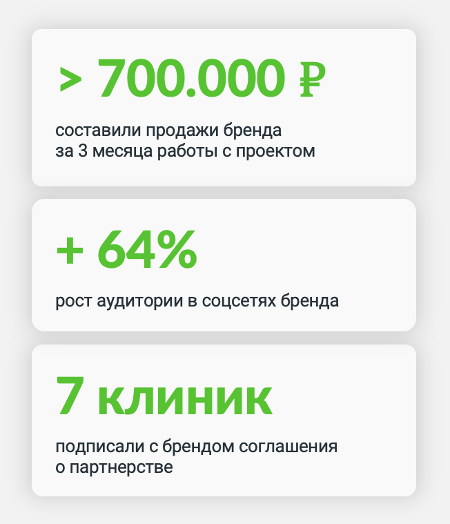 Партнёрства с рядом клиник эстетической медицины и частных косметологических кабинетов.