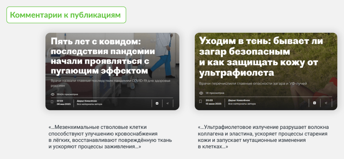 Проведена активная интеграция в профильные дискуссии на научных платформах, медицинских форумах и в соцсетях, что позволило позиционировать ExoLabs как эксперта и завязать первые контакты с целевой аудиторией.