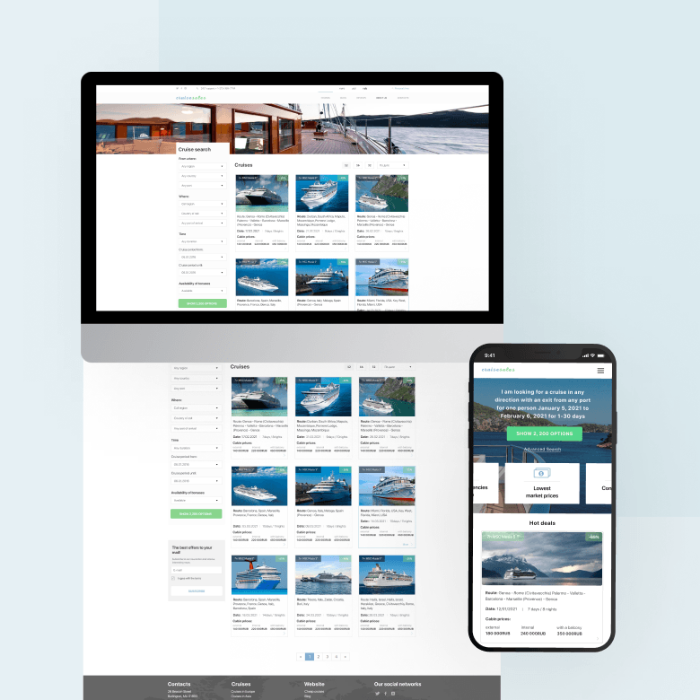 Разработка туристического портала Cruise Seles с интеграцией внутренней системы CRM.