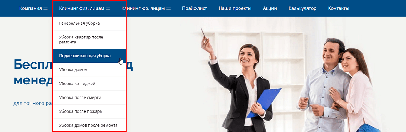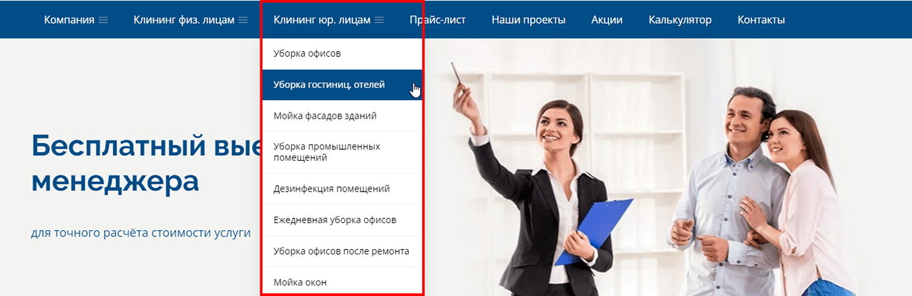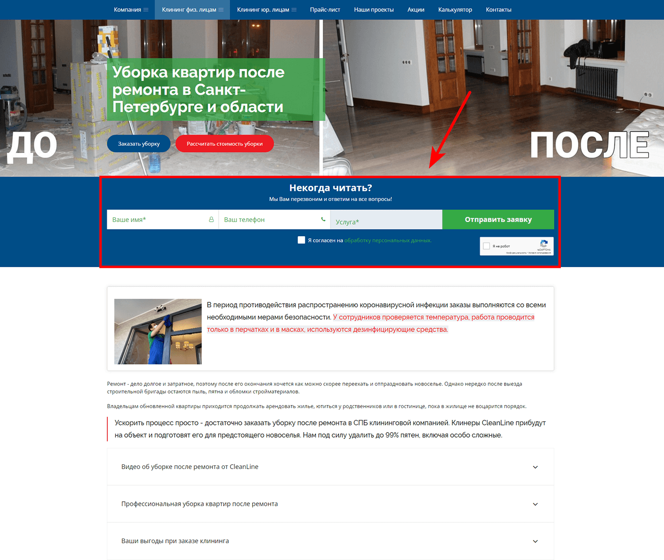 2. На сайте не было калькулятора уборки. Чтобы узнать предварительную стоимость работ, посетителям сайта приходилось вручную рассчитывать ее, исходя из прайс-листа, или звонить менеджерам компании. Время клиентов и сотрудников “Чистой линии” расходовалось неэффективно.