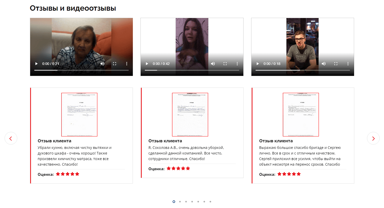 4. Слайдер с видео- и текстовыми отзывами клиентов компании