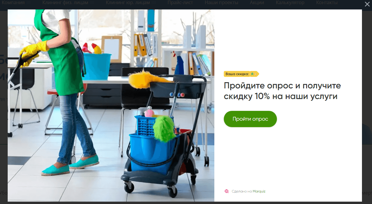 1. На главную страницу сайта добавили квиз, после прохождения которого посетитель получает скидку на заказ.