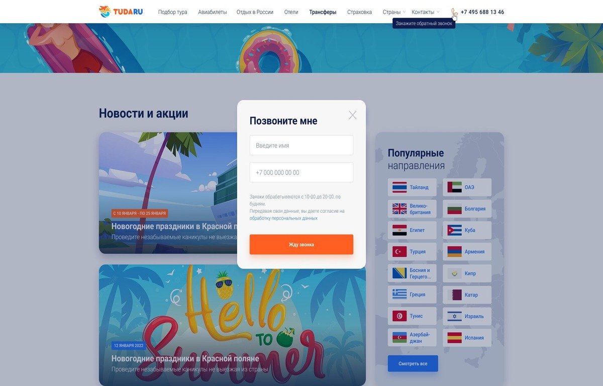 На сайте работает несколько модулей: по миру, по России, по страховкам и другие. Чтобы не увеличивать стоимость разработки сайта, было решено не уходить от модулей, с которыми работал клиент.