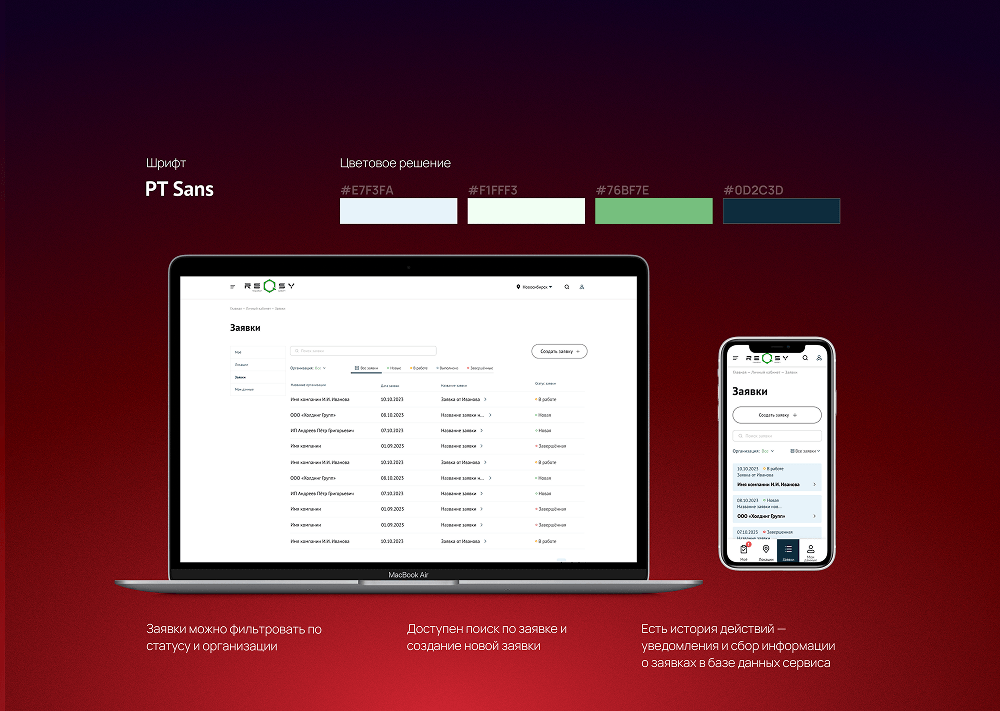 Разработать удобный, безопасный и функциональный личный кабинет для пользователей системы Reqsy.