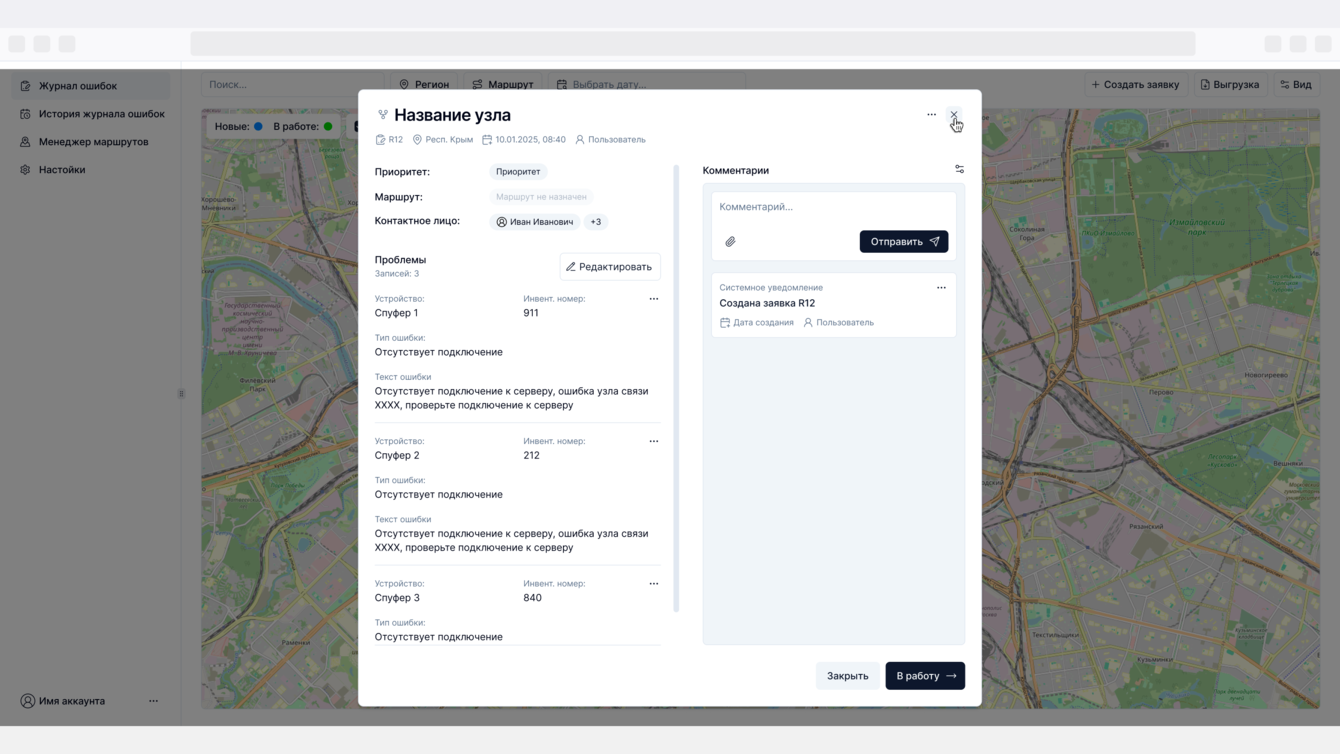 Для компании разработано веб-приложение внутреннего пользования, обеспечивающее централизованное управление процессами оперативного ремонта и обслуживания точек связи.