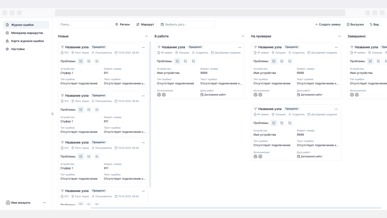 Приложение должно обеспечить единый интерфейс для создания и обработки заявок на обслуживание и ремонт, персонализированный дашборд для диспетчеров, автоматическое построение оптимальных маршрутов выездных бригад с учётом автомобильного и авиационного транспорта, а также зон обслуживания.