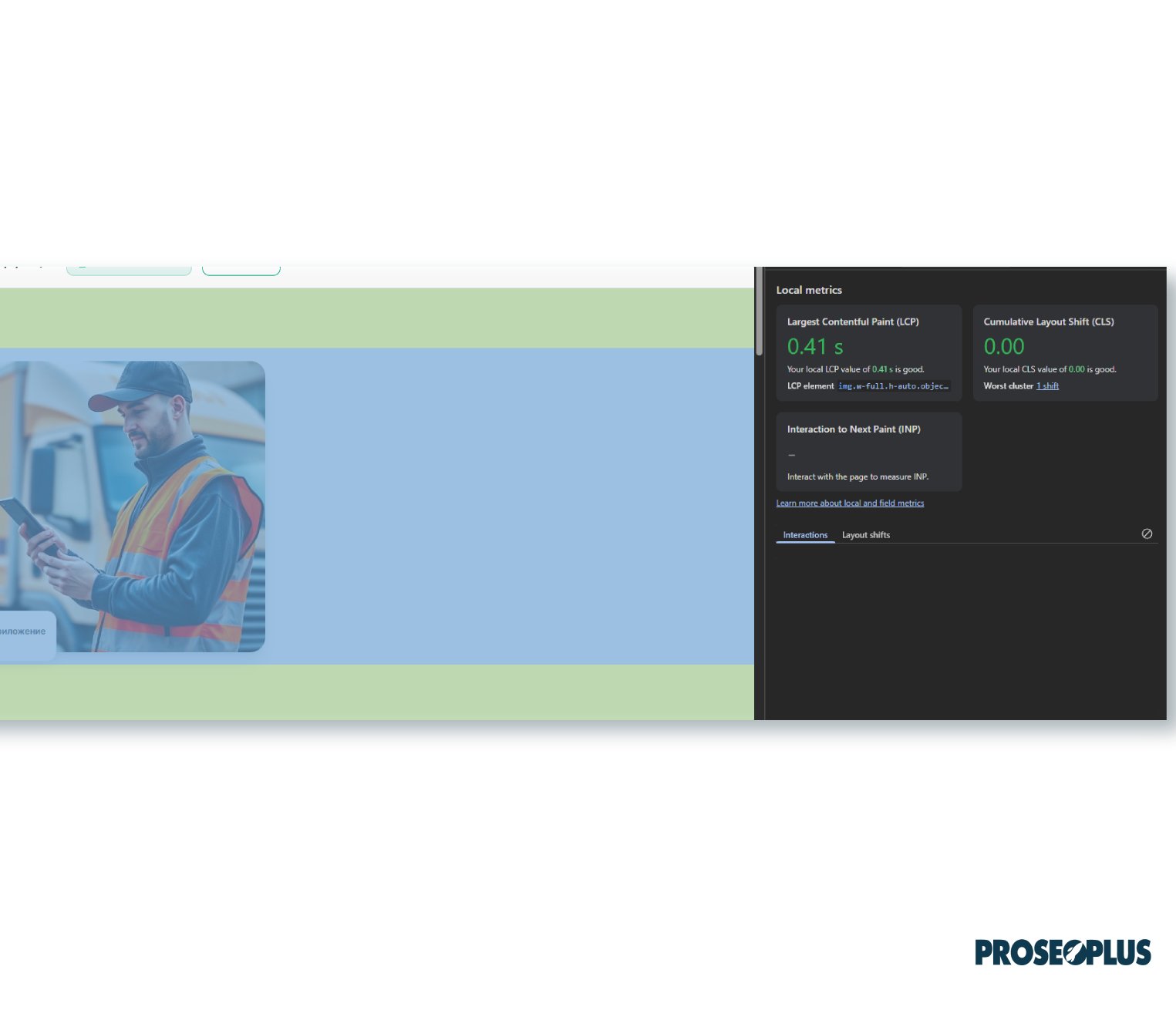 Результат: LCP (отрисовка) — 0.41 секунды. Это быстрее, чем человеческий глаз успевает сфокусироваться. Мы создали «iPhone-момент» в логистике: сайт, который открывается мгновенно, доминируя в PageSpeed и симпатиях поисковых систем.