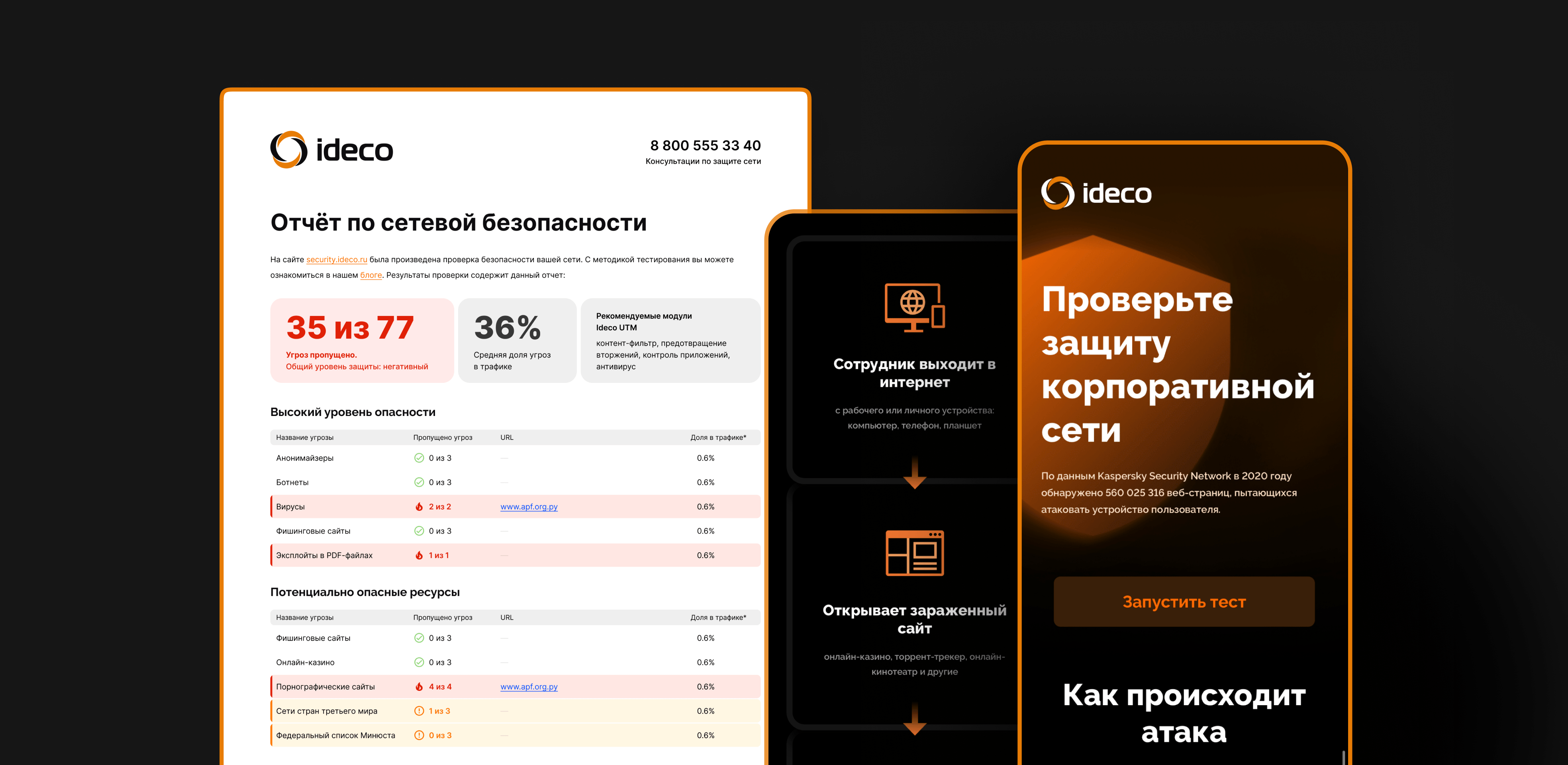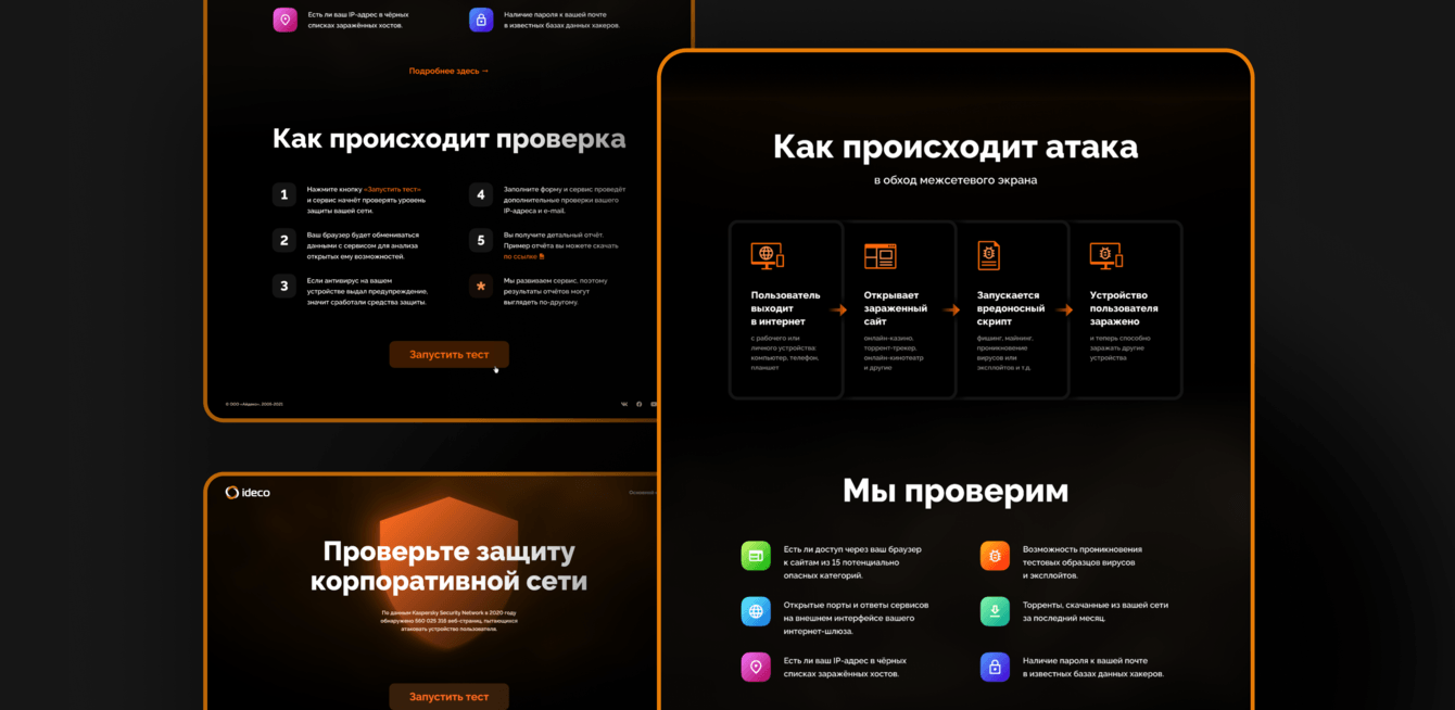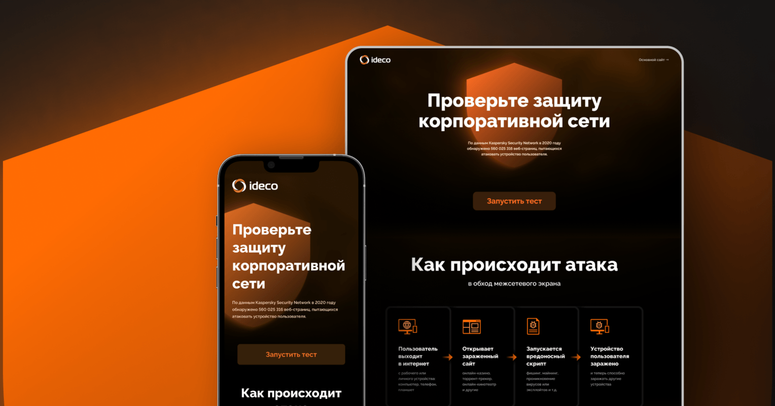 За счёт удобной проверки безопасности сети в реальном времени через новый сайт, компания ideco увеличила продажи основного своего продукта (Ideco UTM) корпоративным клиентам на 28%.