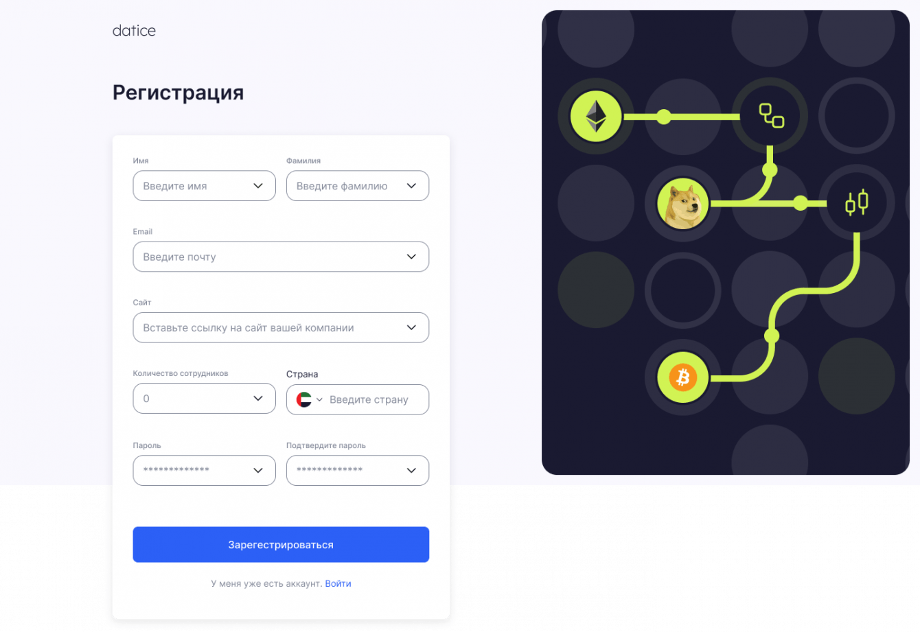 Datice - предоставляет полные данные о цифровых активах, фиатных валютах, и информацию о сетях блокчейн, криптовалютных рынках и децентрализованных финансах, обеспечивая финансовые сервисы важнейшими данными для исследований, торговли, рисков, аналитики, отчетности и соблюдения нормативных требований.
