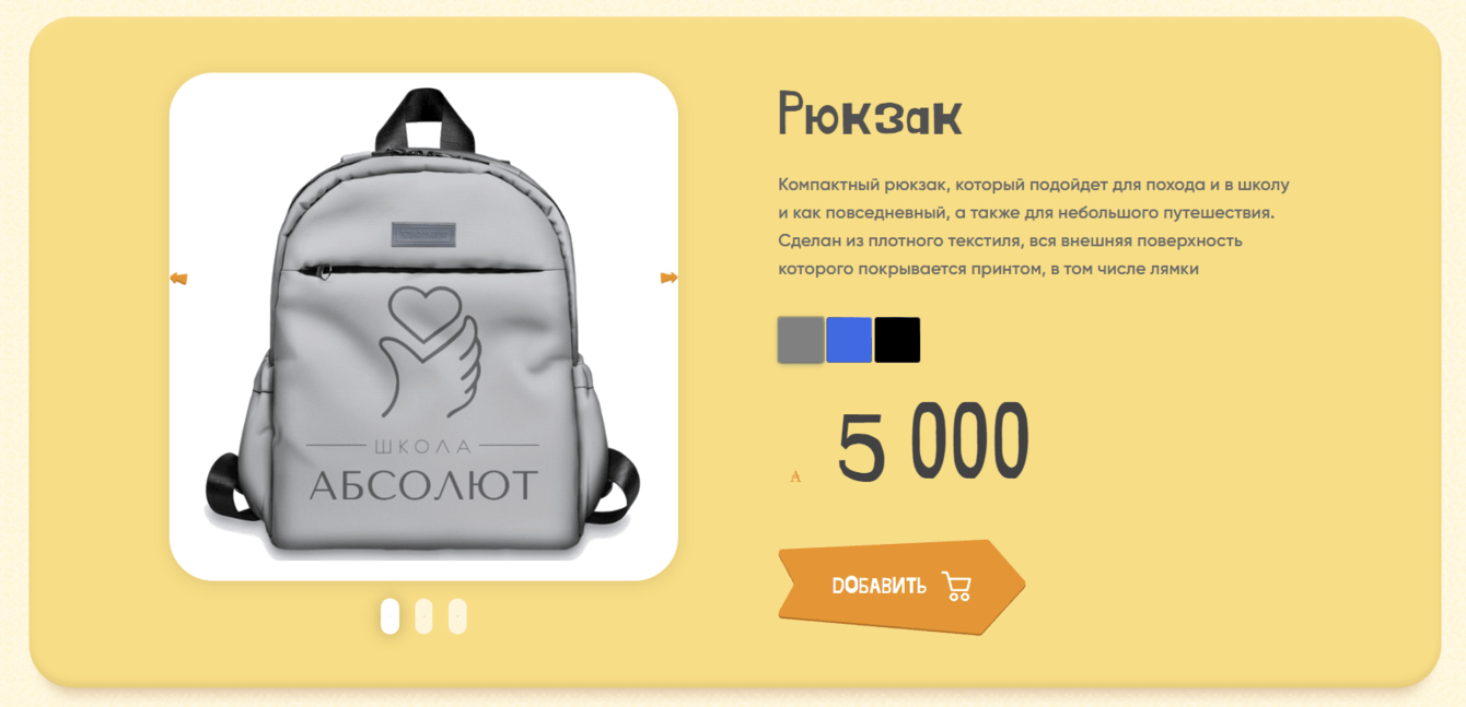 Цель нашей работы — разработать внутренний интернет-магазин для инклюзивной частной школы для повышения мотивации к учёбе. В магазине не используются реальные деньги, только мерч «Абсолюта»: футболки, рюкзаки, тетради и другое. Проект призван научить ребят самостоятельно принимать взвешенное решение о покупке и распоряжаться заработанными ресурсами. Кроме этого, дети получают дополнительную мотивацию хорошо учиться и участвовать в мероприятиях школы, ведь так они зарабатывают баллы для следующих покупок.