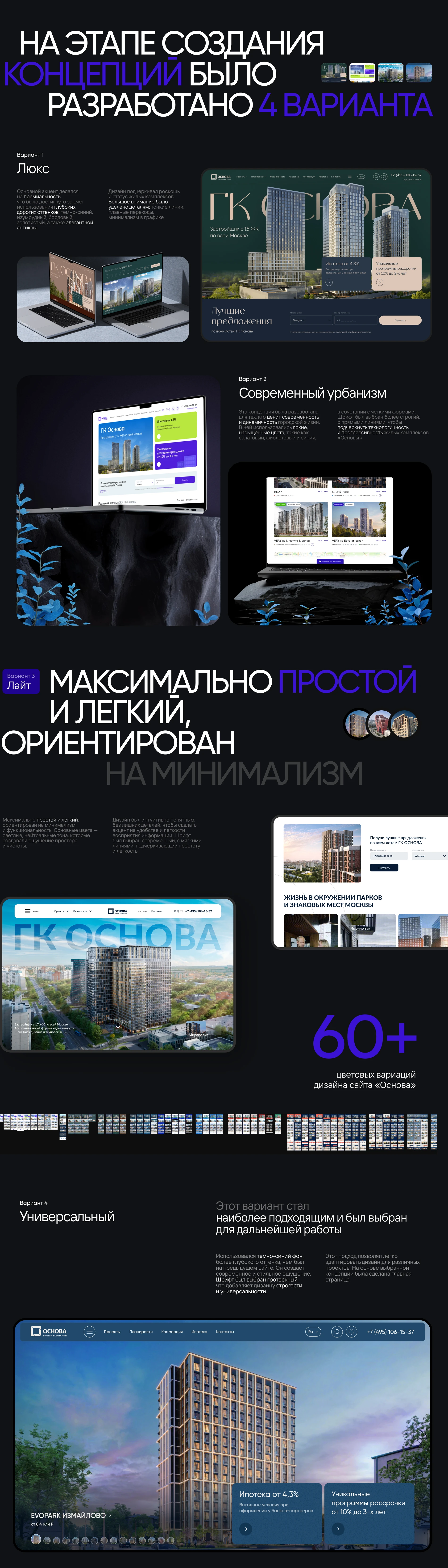 1200+ макетов было сделано для ОСНОВЫ и жилых комплексов, включая адаптивы и различные состояния