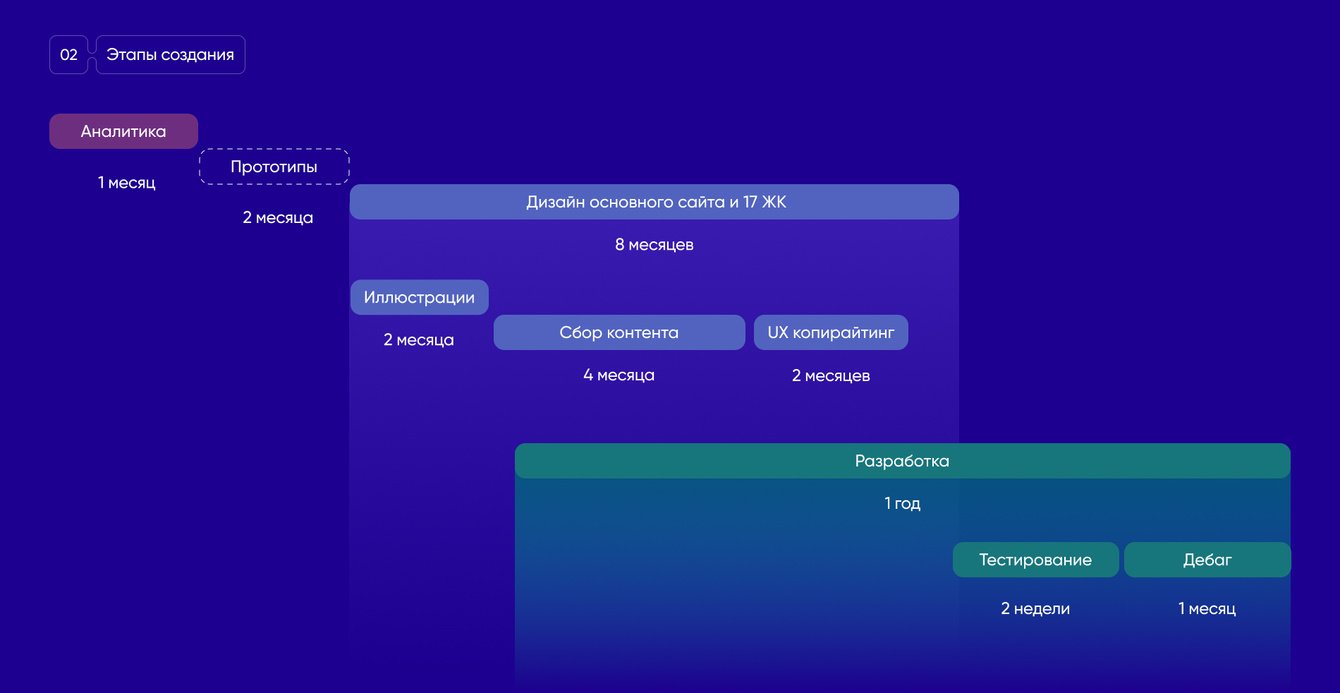1,5 года от первого исследования до релиза проекта со всеми жилыми комплексами