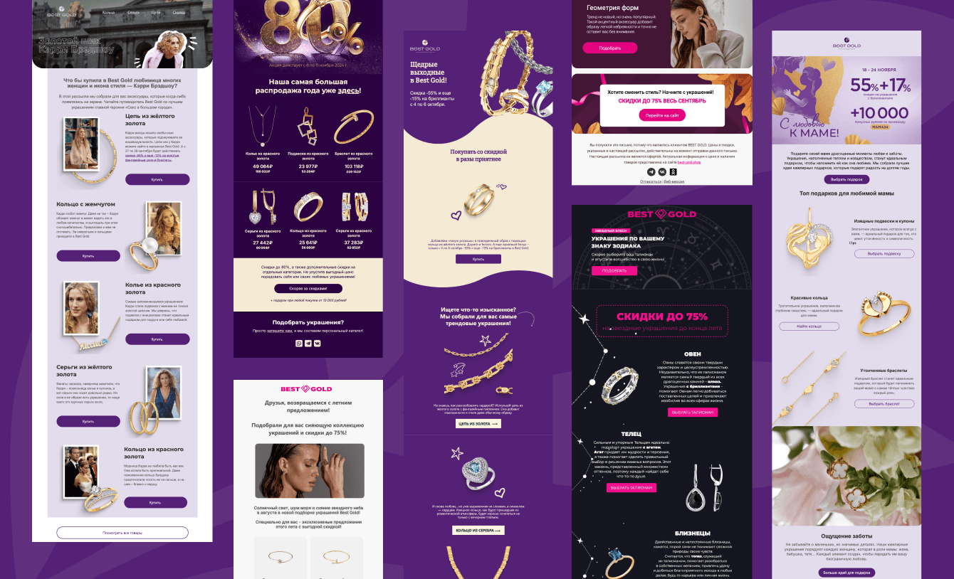 Разработали уникальные структуры писем и запустили несколько вовлекающих рассылок по различным инфоповодам и рассылок с акциями.