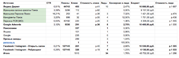 Задача: Компания Персона также занимается сопровождением салонов красоты своей сети и внешних: маркетинг, pr, hr, автоматизацию, работа с финансами. Некоторые из них были на грани выхода из сопровождения из-за низких результатов маркетинга.