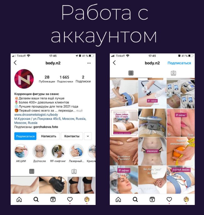 4. Аккаунт был наполнен актуальными работами мастеров, отзывами клиентов и информацией о специалистах;