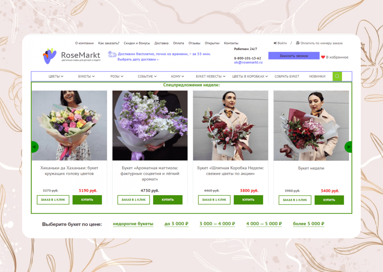 В 2016 году к нам обратился клиент, развивающий цветочную лавку RoseMarkt.ru. У проекта уже был работающий сайт, а с ним накопились проблемы, которые уже не получалось игнорировать:
