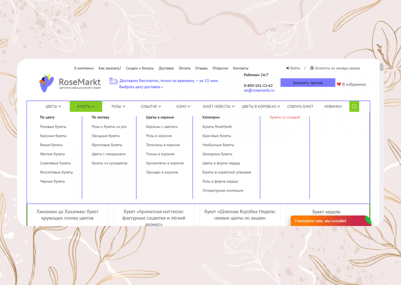 В 2016 году к нам обратился клиент, развивающий цветочную лавку RoseMarkt.ru. У проекта уже был работающий сайт, а с ним накопились проблемы, которые уже не получалось игнорировать: